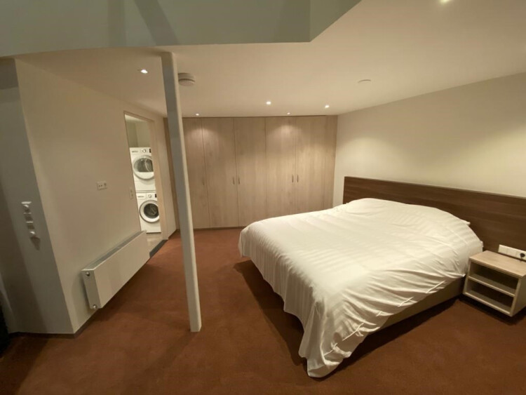 Entree vanwaar het separate toilet en woonkamer betreden kunnen worden. Woonkamer met open keuken en een prachtige glazen vloer waardoor de beneden etage te zien is. De keuken is voorzien van 4 pits inductie kookplaat, inbouw koelkast, diepvries, combi-oven/magnetron, inbouw vaatwasser een voldoende opberg kasten en lades. Via de trap wordt de slaapkamer bereikt. De slaapkamer is voorzien van een tweepersoons kingsize bed inclusief matras en een grote garderobekasten en lade-meubel. En suite aan de slaapkamer zit de badkamer met een grote wandspiegel, lade-meubel met dubbele wastafel en een Siemens wasmachine en wasdroger.