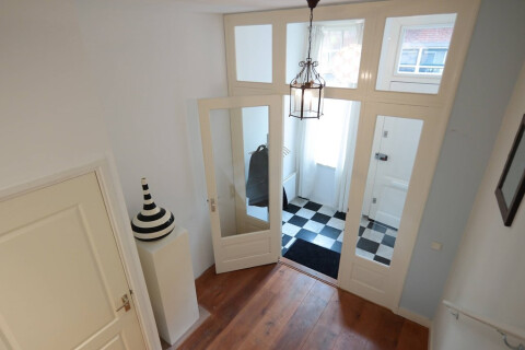 Entré op de begane grond met een tochtportaal/garderobe gelegenheid. Aansluitend in de hal bevinden zich een separate toilet, een afgesloten wasruimte voorzien van een wasmachine en droger en diverse kasten als opslagruimte. De hal is voorzien van een mooie houten vloer.