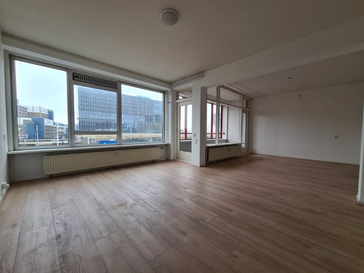Entree appartement, hal (ca. 7 m2) recent gerenoveerde keuken voorzien van luxe inbouwapparatuur, zoals een koel-vriescombinatie, een vaatwasser, een inductiekookplaat met afzuigkap, een combi oven en voldoende opbergruimte (ca. 7.31 m2). Separaat toilet met fontein. De badkamer voorzien van douche en wastafel. Ruim opgezette woonkamer (ca. 36 m2) met handige inbouwkasten en een spectaculair uitzicht over het Centraal station. Vanuit de woonkamer heeft u toegang tot het inpandig balkon waarvan de raampartijen volledig open kunnen. Hier is het heerlijk zitten. Aansluitend bevinden zich aan de voorzijde van het appartement twee goede slaapkamers (ca. 10 m2 en 5 m2) . Tevens beschikt dit appartement over een eigen berging en gemeenschappelijke fietsenberging in de onderbouw.