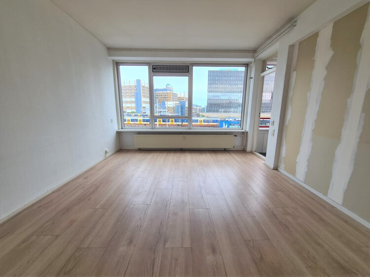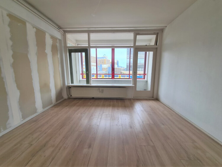 Entree appartement, hal (ca. 7 m2) keuken voorzien van voldoende opbergruimte en aansluitingen voor witgoed(ca. 7.31 m2). Separaat toilet met fontein. De badkamer voorzien van douche en wastafel. Ruim opgezette woonkamer (ca. 36 m2) met handige inbouwkasten en een spectaculair uitzicht over het Centraal station. Vanuit de woonkamer heeft u toegang tot het inpandig balkon waarvan de raampartijen volledig open kunnen. Hier is het heerlijk zitten. Aansluitend bevinden zich aan de voorzijde van het appartement twee goede slaapkamers (ca. 10 m2 en 5 m2) . Tevens beschikt dit appartement over een eigen berging en gemeenschappelijke fietsenberging in de onderbouw.