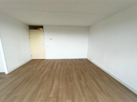 Indeling: Entree complex op de begane grond met brievenbussen en bellentableau, middels de lift ofwel trappen is het appartement op de 5e verdieping te betreden. Hal met intercom welk toegang biedt tot alle vertrekken. Aan de galerijzijde bevinden zich de twee slaapkamers voorzien van inbouwkasten. Separaat toilet. De badkamer is volledig gerenoveerd en beschikt over een douche met fraaie glaswand, een wastafelmeubel met verlichte spiegel en aansluiting voor wasmachine en droger. Woonkamer met weids uitzicht over de stad en eveneens gerenoveerde open keuken voorzien van een koel-vriescombinatie, een combi-oven-magnetron, een inductiekookplaat met RVS-afzuigkap, een vaatwasmachine en voldoende werk- en opbergruimte. Via de schuifpui is het terras te bereiken welke zich uitstrekt over de gehele breedte van het appartement.