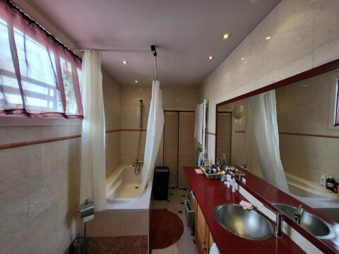 Entree via de Begane grond. Op de eerste verdieping is een hal gesitueerd van 8 m2, 2 slaapkamers van respectievelijk 13m2 en 11m2 alsmede een werkruimte van 4,5 m2 met een bureau en 2 boekenkasten Tevens is op de eerste verdieping de badkamer voorzien van ligbad van 6,5 m2, en een inbouwkast met een aparte wasmachine en droger.