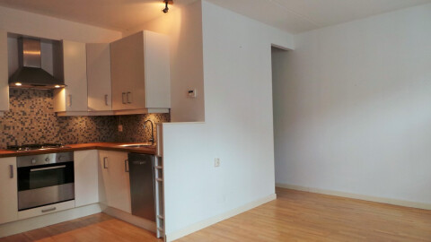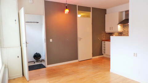 Entree op begane grond, via de hal is de woonkamer te betreden met open keuken voorzien van gaskookstel, afzuigkap, oven, koel- vriescombinatie en vaatwasser. De badkamer is voorzien van douche, wastafel, toilet. Door de handige indeling is er een aparte slaapruimte gecreëerd.
