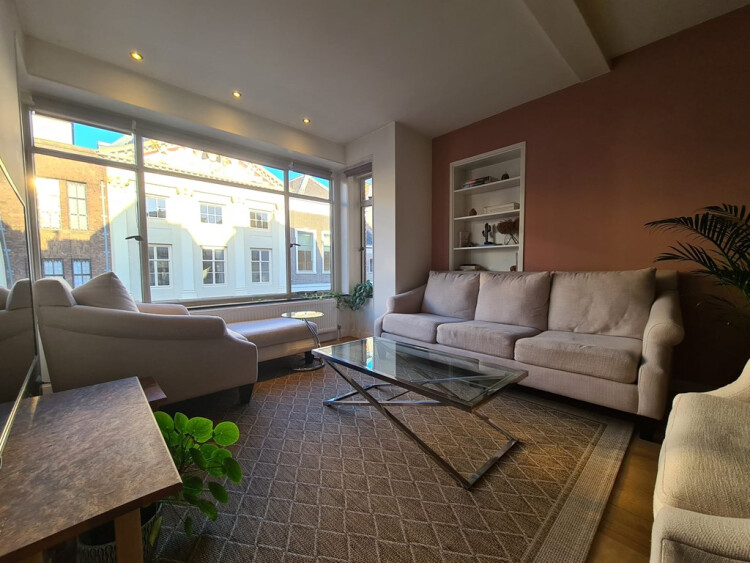 De woonkamer is ruim opgezet en voelt erg karakteristiek aan door het uitzicht welk het aan de voorzijde van het pand biedt op de Breestraat. De open-keuken is eveneens luxe ingericht en voorzien van een koelkast, inductiekookplaat, afzuigkap, vaatwasser en combi-oven/magnetron.