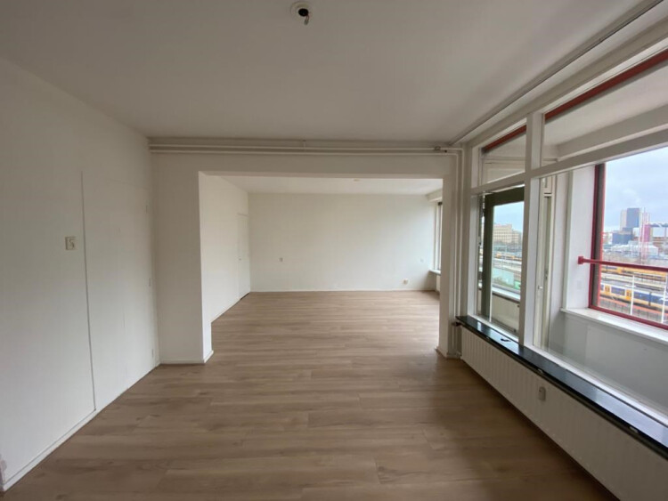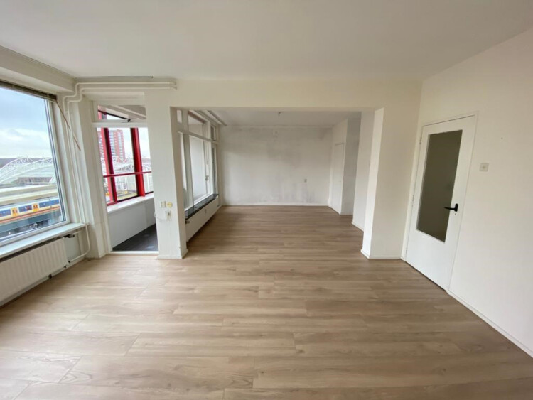 Entree appartement, hal (ca. 7 m2) recent gerenoveerde keuken voorzien van luxe inbouwapparatuur, zoals een koel-vriescombinatie, een vaatwasser, een inductiekookplaat met afzuigkap, een combi oven en voldoende opbergruimte (ca. 7.31 m2). Separaat toilet met fontein. De badkamer voorzien van douche en wastafel. Ruim opgezette woonkamer (ca. 36 m2) met handige inbouwkasten en een spectaculair uitzicht over het Centraal station. Vanuit de woonkamer heeft u toegang tot het inpandig balkon waarvan de raampartijen volledig open kunnen. Hier is het heerlijk zitten. Aansluitend bevinden zich aan de voorzijde van het appartement twee goede slaapkamers (ca. 10 m2 en 5 m2) . Tevens beschikt dit appartement over een eigen berging en gemeenschappelijke fietsenberging in de onderbouw.